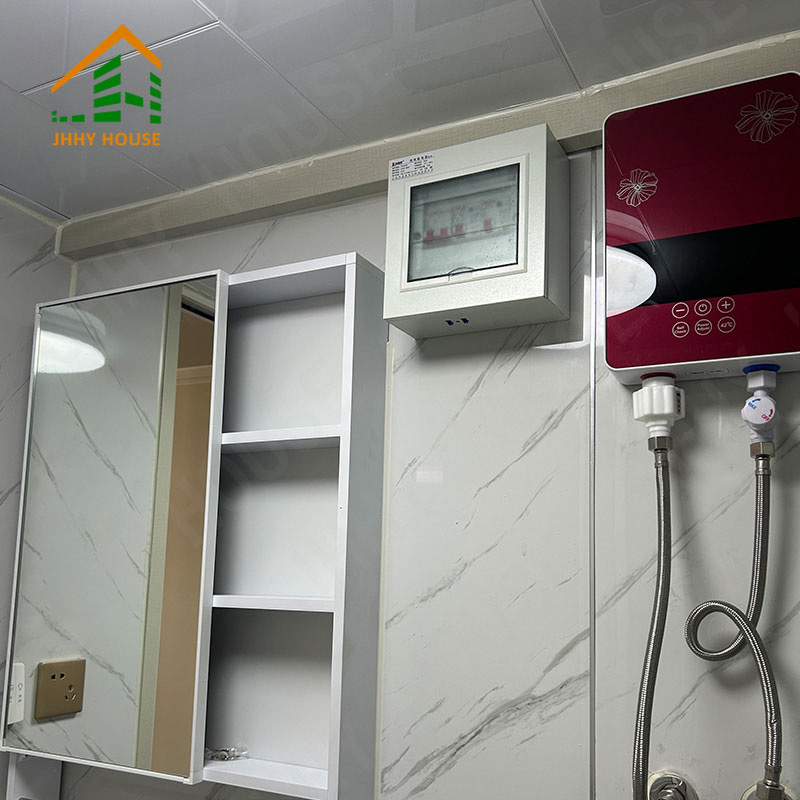 ใช้งานได้ทันทีในทุกสถานการณ์ ไม่ต้องใช้เครื่องมือใดๆ!มีการติดตั้งระบบไฟฟ้า/น้ำประปาและไฟ LED ไว้ล่วงหน้าแล้วปรับแต่งรูปแบบ (ผนัง หน้าต่าง การจัดวาง วัสดุ) สำหรับบ้านและหอพักพนักงาน