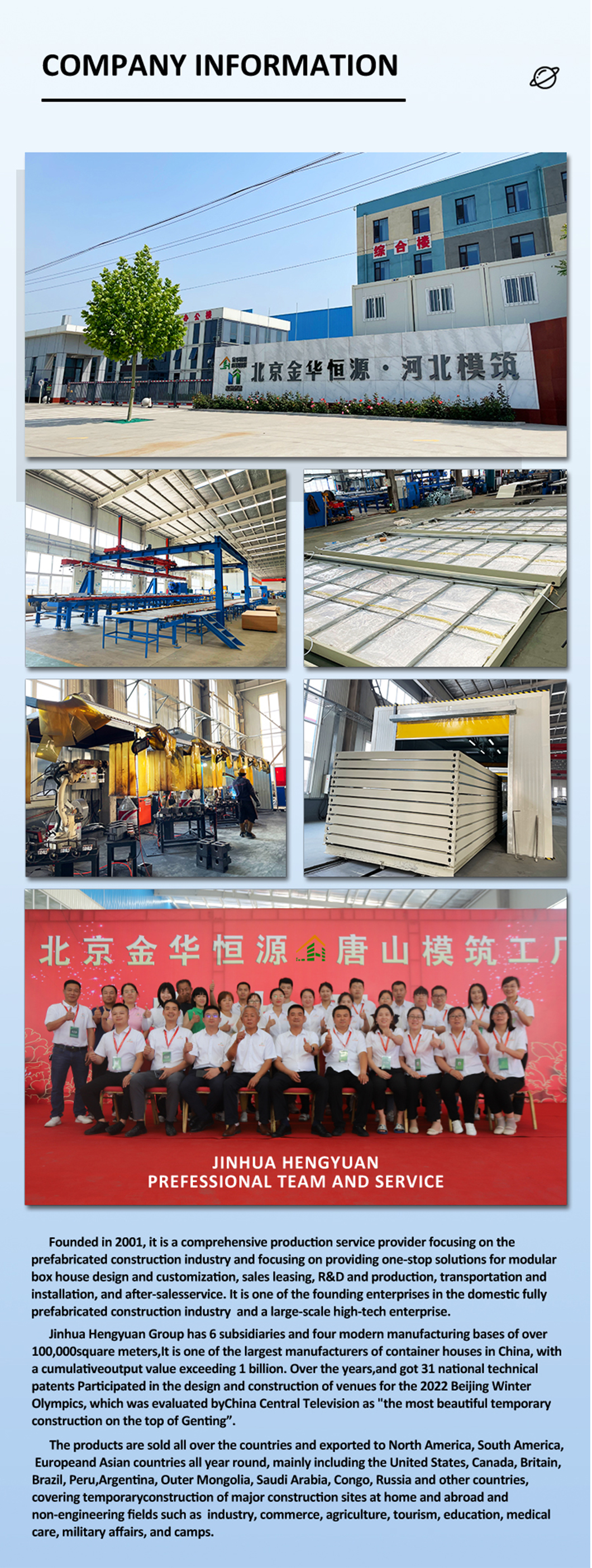 กลุ่มบริษัทจินหัวเหิงหยวนมีบริษัทสาขา 6 แห่ง และฐานการผลิตที่ทันสมัย 4 แห่ง ครอบคลุมพื้นที่กว่า 60,000 ตารางเมตร เป็นหนึ่งในผู้ผลิตบ้านคอนเทนเนอร์รายใหญ่ที่สุดในประเทศจีน มีมูลค่าผลผลิตสะสมมากกว่า 1 พันล้านดอลลาร์ ตลอดหลายปีที่ผ่านมา และได้รับสิทธิบัตรทางเทคนิคระดับชาติ 31 ฉบับ ได้มีส่วนร่วมในการออกแบบและก่อสร้างสถานที่จัดการแข่งขันกีฬาโอลิมปิกฤดูหนาวปักกิ่ง 2022 ซึ่งได้รับการยกย่องจากสถานีโทรทัศน์กลางแห่งประเทศจีนว่าเป็น "สิ่งก่อสร้างชั่วคราวที่สวยงามที่สุดบนยอดเขาเก็นติง"