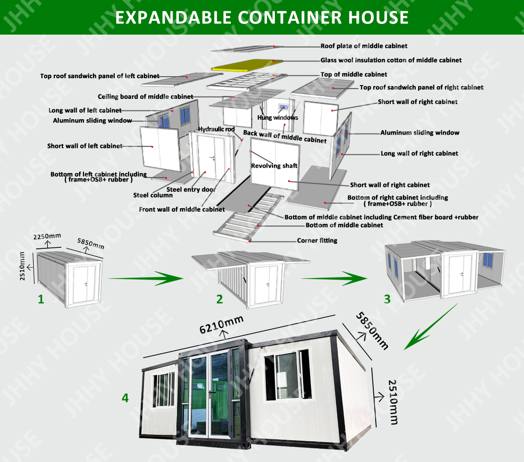3000kgsบ้านสำเร็จรูปแบบขยายได้ บ้านเคลื่อนที่ บ้านคอนเทนเนอร์แบบขยายได้ 20 ฟุต บ้านสำเร็จรูป