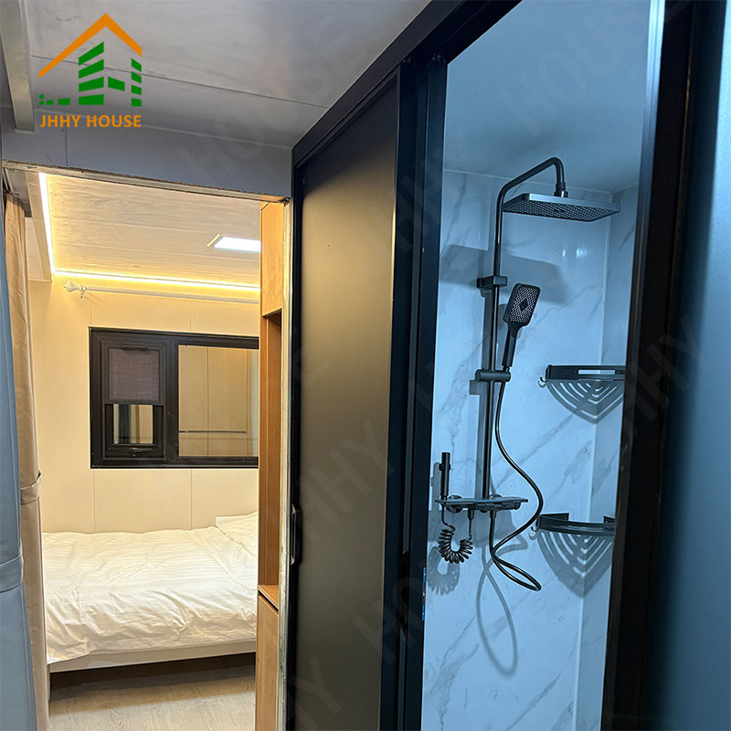 | ระบบตกแต่งภายใน | ฝ้าเพดานแขวน (แผ่น OSB + แผ่นคาร์บอนไฟเบอร์) พื้นผิวผนังภายใน (แผ่น OSB + แผ่นคาร์บอนไฟเบอร์) (แผ่นไม้อัด + แผ่นคาร์บอนไฟเบอร์) พื้นภายในอาคาร (พื้น SPC แบบล็อค) ระบบทำความร้อนใต้พื้น ประตูห้องน้ำ (ประตูกระจกบานเลื่อนเพื่อความเป็นส่วนตัว) อ่างล้างหน้า (หินอ่อนสั่งทำพิเศษ) ผนังห้องน้ำ (แผ่นปิดผนัง SPC) พื้นห้องน้ำ (กระเบื้อง) เฟอร์นิเจอร์ เช่น เตียง โต๊ะข้างเตียง โซฟา ฯลฯ (สามารถสั่งทำตามแบบได้) |