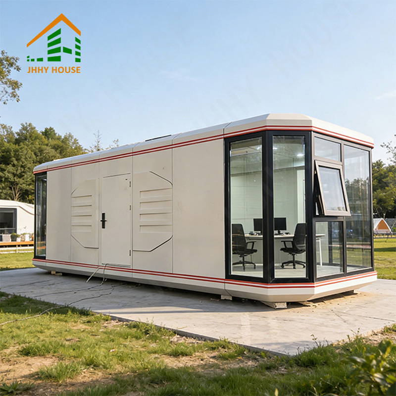 The main galvanized steel structural double frame Case aluminum plate (2.0mm) Shell surface treatment (fluorocarbon paint spraying process) 120mm polyurethane foam insulation Panoramic glass curtain wall (6+12A+6+12A+6 insulated low-e tempered glass) Panoramic glass oversized sunroof (6+6 laminated tempered glass+retractable canopy) Entry door (fire-rated steel door-with fingerprint waterproof combination lock) |